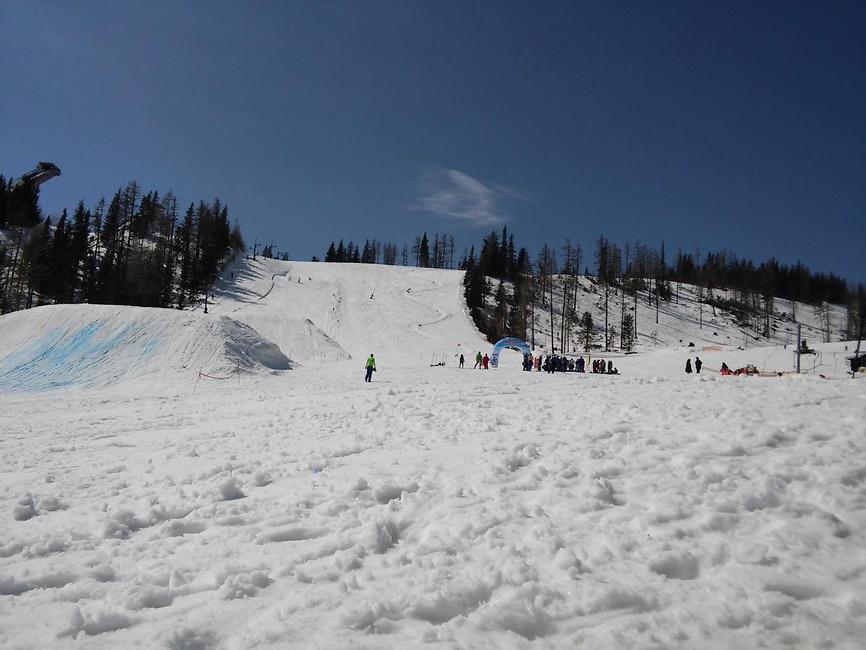 Po krótkiej przerwie wróciliśmy znów na stoki Strbskiego Plesa – niestety śnieg na skutek wysokiej temperatury miejscami zaczął przypominać papkę i w górnych, stromszych partiach utworzyły się garby i muldy.